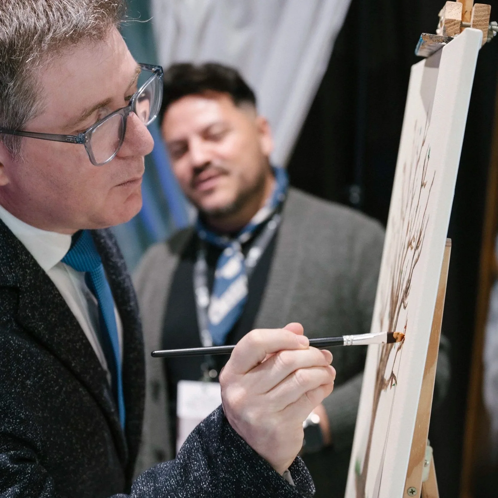 Your guests don't just attend your wedding — they become part of the artwork. Together, live during your celebration, they create a one-of-a-kind painting. You receive it framed, one month later, with a timelapse video of the magical moment.
