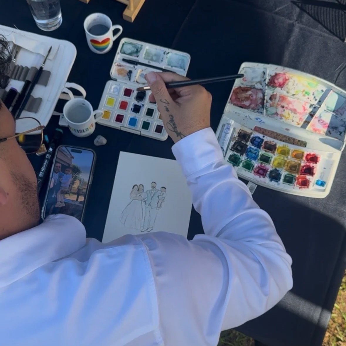While you celebrate the most important day of your life, your guests enjoy something truly personal — a custom portrait created live, just for them.