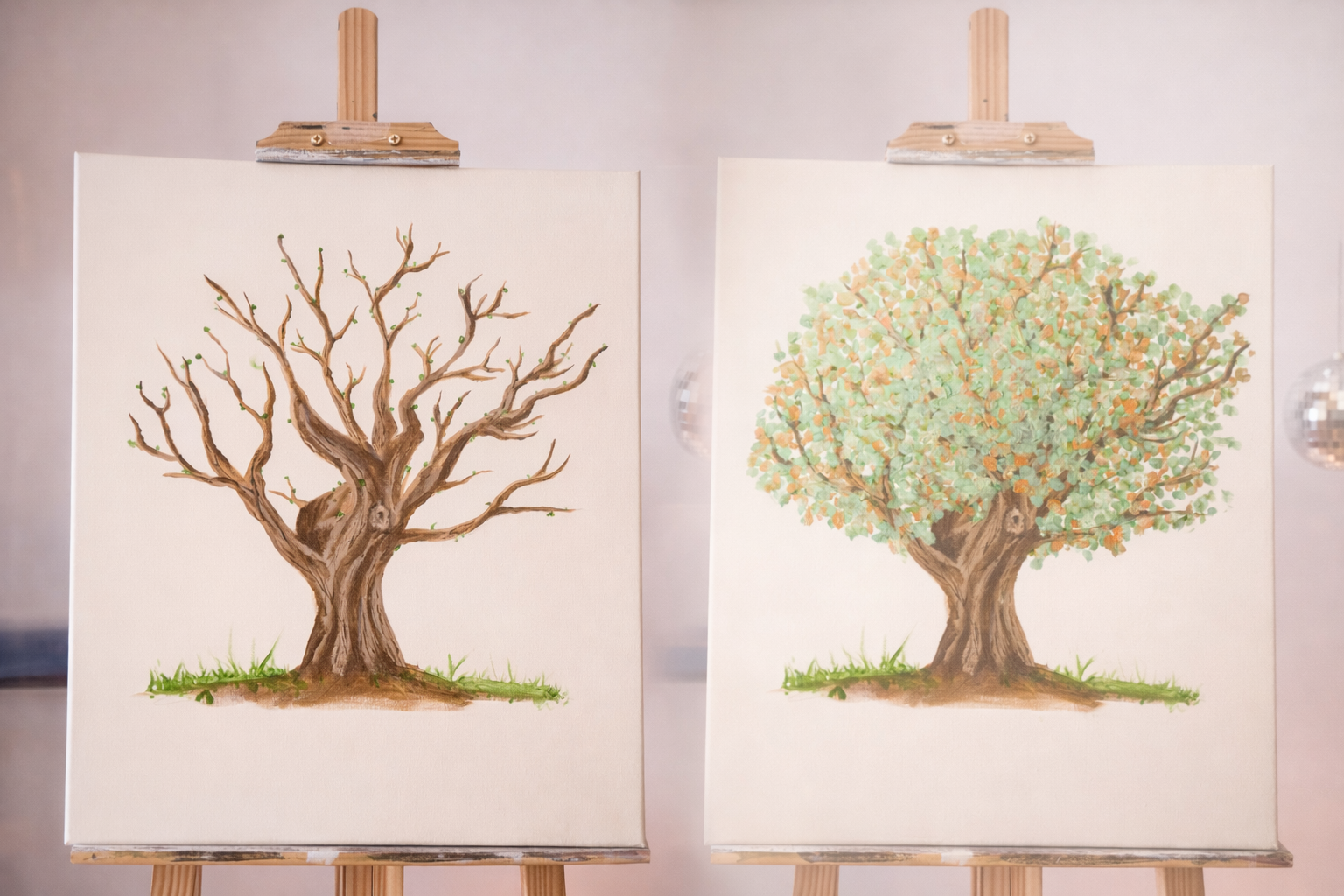 Yes before the wedding we meet to discuss your ideas. A tree with fingerprint leaves, a floral composition, your initials anything is possible. The base artwork is created specifically for you.
