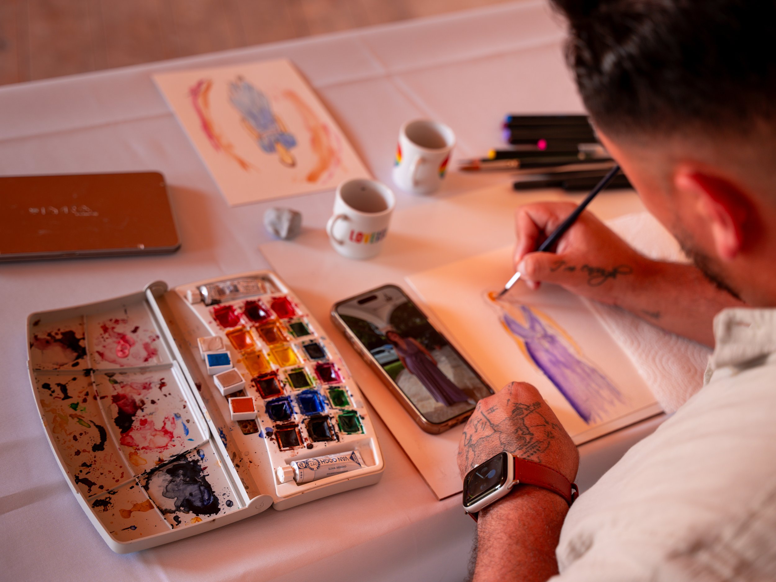Instead of traditional gifts, your guests receive a personalized piece of art — created live, in front of their eyes.